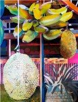 Gordon’s trip back to fine art came to real fruition after their move to Mexico once he was able to apply his creative talents towards his own, non-commercial creations. Gordon uses Photoshop to plan out the paintings and develop the characters and subject of his work. If a new idea develops he can then scan the painting into the computer and try out the idea before committing it to the canvas which he does by hand. Maureen also began exploring her medium to the maximum in Mexico creating geometric and organic ceramic forms (cacti, insects, hearts & functional art) influenced by her environment while incorporating the traditional firing methods in gas and electric kilns as well as pit firing, raku and naked raku techniques.