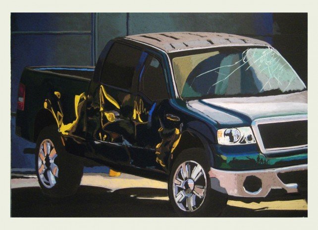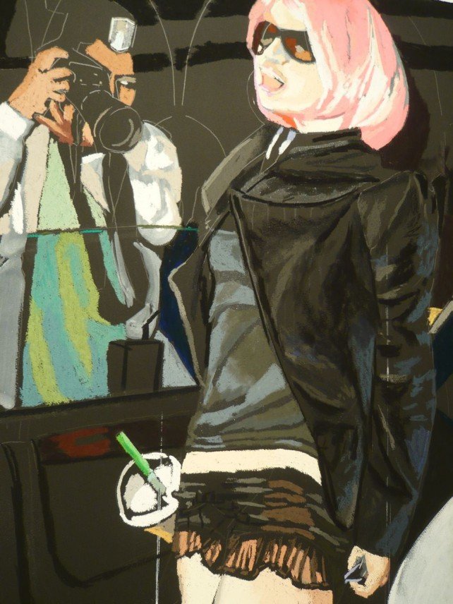 By the end of 2006 through 2007, the art world was in a frenzy of growth, and it was thrilling. Collectors were buying avidly, and huge sleek spaces and shows opened in Chelsea, with exciting, glittering parties. I shared a big studio in Soho with my husband Millree Hughes, also an artist. But the spectacle and the day-to-day reality were quite different. The news mirrored this un-reality, as celebrity news alternated with war and finance. Around the time Britney Spears had a yearlong public meltdown, I had an epiphany. It was time for a new album: STARS AND CARS. Walter Robinson has elucidated beautifully all that I intended when I embarked on this body of work, in a 2008 catalogue essay for the gallery SAKS in Geneva Switzerland.